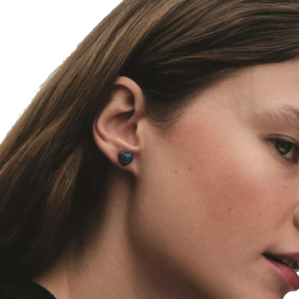 Prelivajući opal u obliku srca, kreiran u laboratoriji, ima spektar zeleno-plavih nijansi i pruža sjaj, dizajniranih da dočaraju živopisne boje džungle. Simbol spajanja ljubavi sa prirodom, ove živopisne neviseće minđuše c´e dodati privlačnu tačku fokusa tvom izgledu. Upari ih sa drugim šarenim stilovima kako bi istražila inetersantni maksimalizam i podsetila se divlje, slobodoumne energije leta.