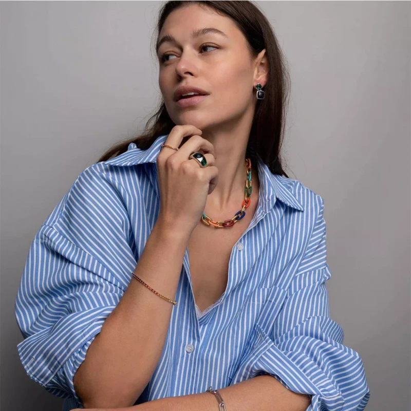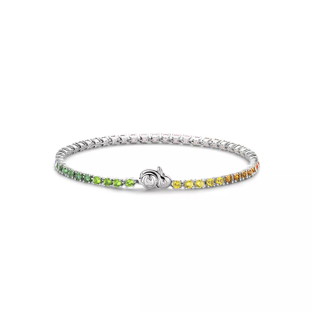 Ženska narukvica brenda Ti Sento od najfinijeg srebra i sa raznobojnim cirkonima koji su umetnuti po celoj dužini nakita.