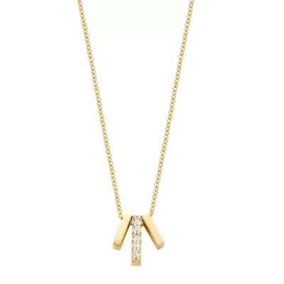 Tri odvojena priveska daju ovoj ogrlici od belog zlata nju privlačnost. Centralni privezak blista sa 5 kubnih cirkona.