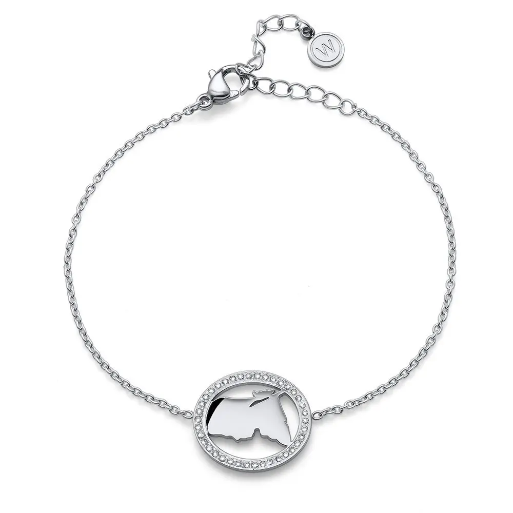 Ženska narukvica brenda Oliver Weber. Karakteriše je kružni privezak u čijoj unutrašnjosti se nalazi profil Mozarta, optočen je Swarovski kristalima koji daju notu elegancije ovom modelu i čine ga pogodnim za svakodnevno nošenje.