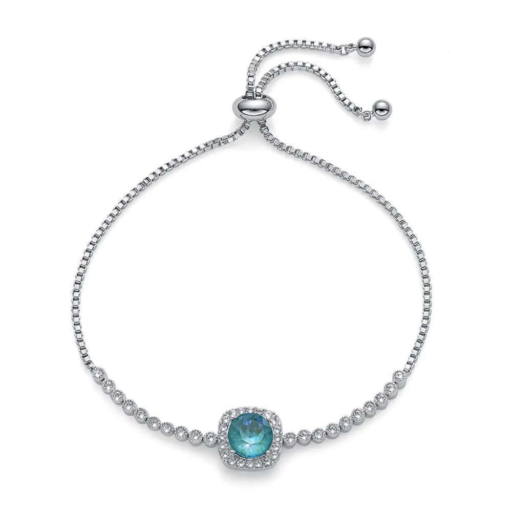 Narukvica je napravljena od rodiniranog čelika sa svarovskim kristalima. Središnji deo narukvice imai svarovski kristal u tirkiznoj boji. Jedna lepa i elegantna narukvica za sve ljubitelje ovog brenda.
