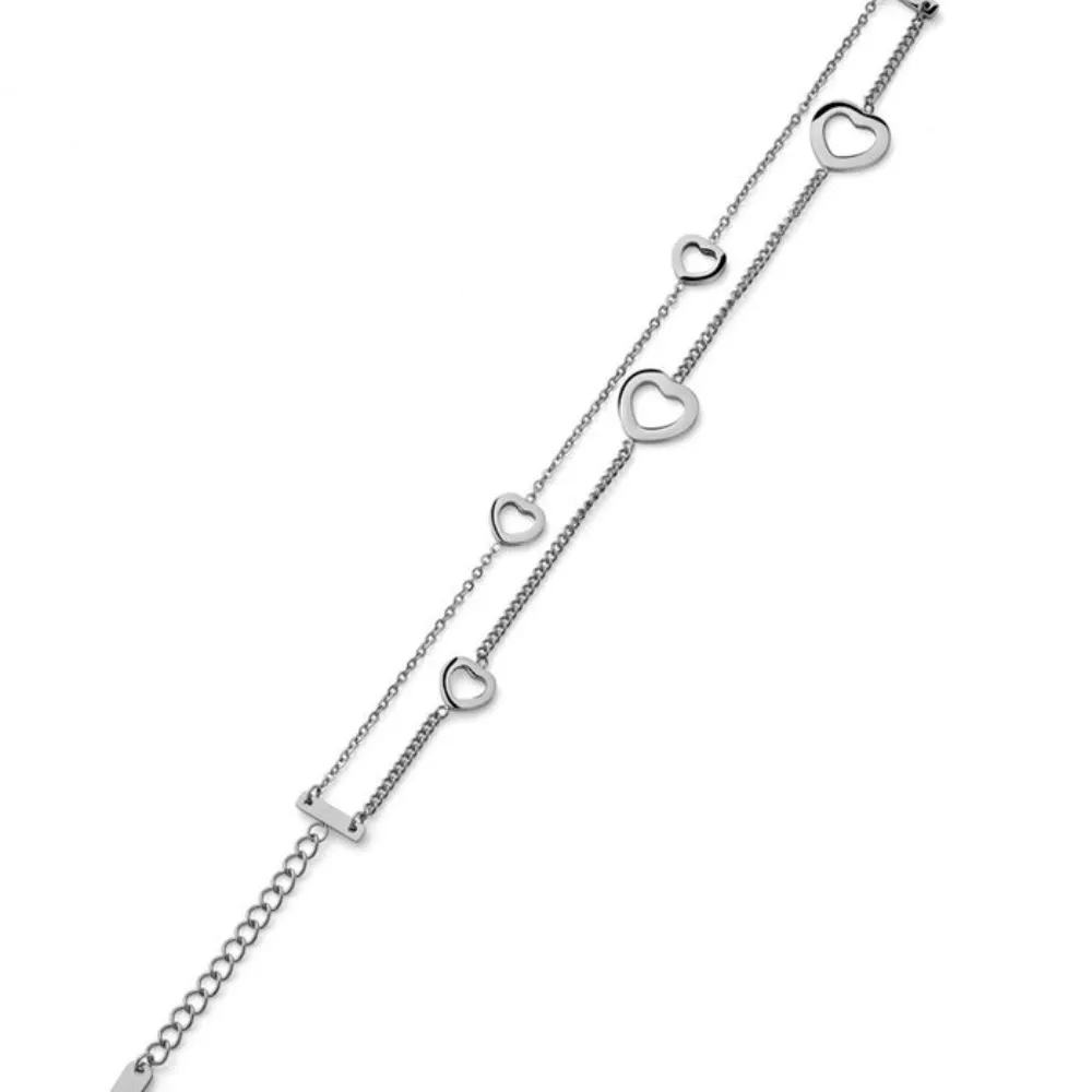 Interesantna narukvica u boji srebra, ono što dodatno ističe narukvicu su suptilni detalji u obliku srca.