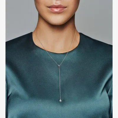 Prilagodljiva ogrlica koja se slaže sa svim odevnim kombinacijama – od crne haljine do poslovnog odela. Ova srebrna Y-ogrlica Timeless Elegance dovoljno je upečatljiva da bude deo svake odevne kombinacije, ali i delikatna da na diskretan i moderan način unese malo svetlucavosti. Zahvaljujući zupčasto utisnutim kruškolikim i četvrtastim kamenčićima, ovaj jedinstven stil će osobu koja ga nosi pretvoriti u pravu zvezdu svake zabave.