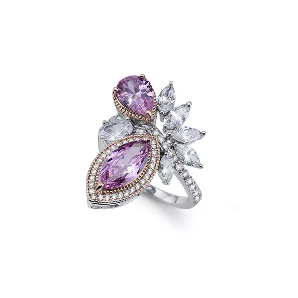 Ženski prsten brenda Oliver Weber u boji srebra sa belim kristalima i cirkonima, kao i dva veća ružičasta kristala. Savršen detalj koji se uklapa uz svaku odevnu kombinaciju.