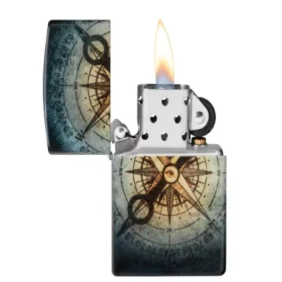 Originalan Zippo upaljač izrađen kombinacijom 540 boja. Zaboravljeni kompas predstavljan je na jednoj strani,a na drugoj strani je dizajn lobanje. Svetli u mraku. Upaljači brenda Zippo prepoznatljivi su po obliku i dizajnu koji obezbeđuje jednostavnu upotrebu,plamen je postojan i otporan na vetar. Svaki model dolazi u originalnom pakovanju i idealan je poklon trajnog kvaliteta.