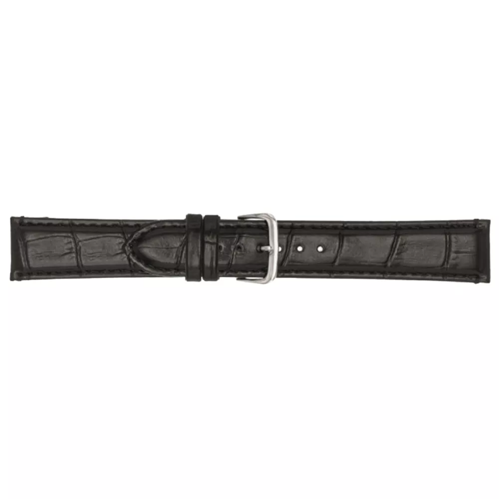 Crni Poletto Faux-Leather Alligator Grained kožni kaiš za sat odiše elegantnim i profinjenim dizajnom. Kaiš je izrađen od visokokvalitetne imitacije kože sa teksturom aligatorske kože, koja mu daje luksuzan izgled. Dolazi sa srebrnom kopčom sa iglicom koja omogućava sigurno i udobno nošenje. širina kaiša je 20 mm, što ga čini pogodnim za mnoge modele satova. Ravan ulaz omogućava lako postavljanje na sat. Idealan je izbor za one koji traže sofisticiran izgled uz ekološki prihvatljiv materijal.