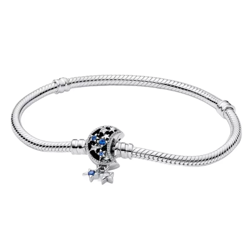 Unesite nebeski dodir svom stilu uz Pandora Moments Sparkling Moon Clasp narukvicu sa zmijskim lancem. Sa kopčom u obliku polumeseca, ova narukvica sa zmijskim lančic´em od srebra ima gravuru „Dream big“ na poleđini kopče.
