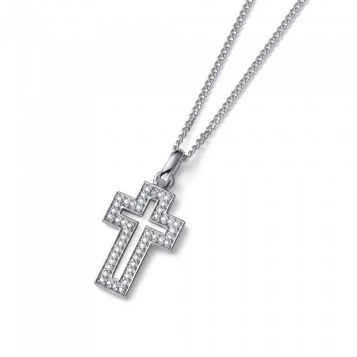 Ženska ogrlica brenda Oliver Weber izrađena od srebra sa priveskom u obliku krsta sa Swarovski kristalima.