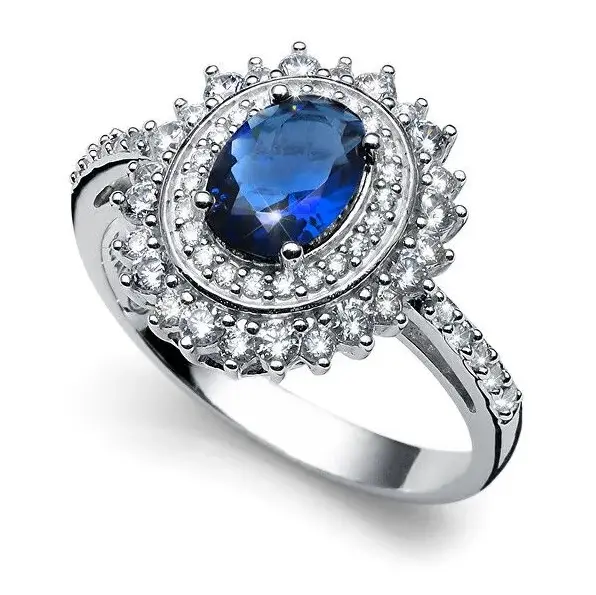 Elegantan ženski prsten sa plavim i belim Swarovski kristalima. Pogodan za nošenje u svečanim prilikama.