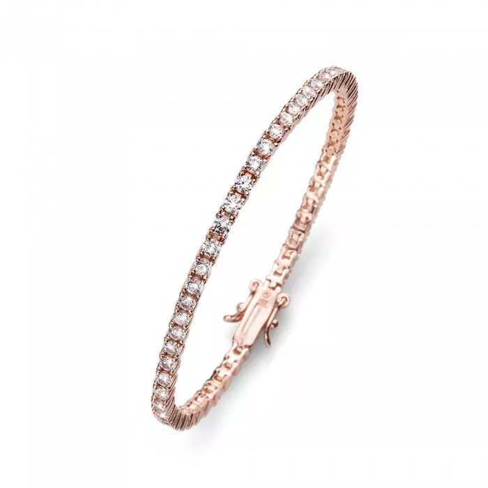 Elegantna ženska narukvica brenda OLIVER WEBER izrađena od srebra u roze boji zlata u kombinaciji sa Swarovskim kristalima bele boje.