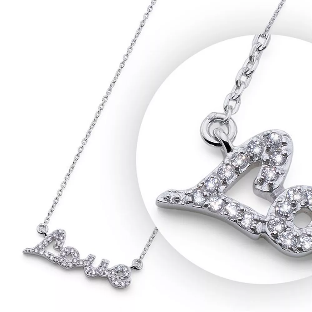 Unesite dozu elegancije i ženstvenosti u svoj stil sa Oliver Weber ženskom ogrlicom izrađenom od srebra sa natpisom "Love" i Swarovski kristalima transparentne boje. Veličina natpisa 2.1 x 1cm.