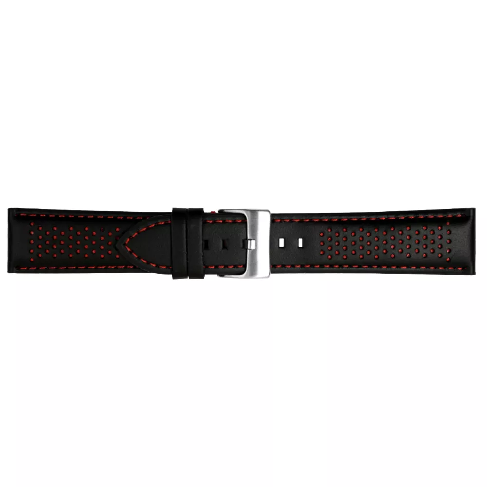 Crni Poletto Cosmos leather and lorica waterproof kaiš za sat sa crvenim detaljima je elegantan i funkcionalan izbor za vaš sat. Kaiš je izrađen od visokokvalitetne kože, u crnoj boji, sa srebrnom kopčom sa iglicom. Sa širinom od 20 mm, savršen je za većinu modela satova. Posebno je pogodna opcija za one koji traže otpornost na vodu, jer je napravljen od materijala koji obezbeđuje vodootpornost, dok ravan ulaz omogućava jednostavno postavljanje.