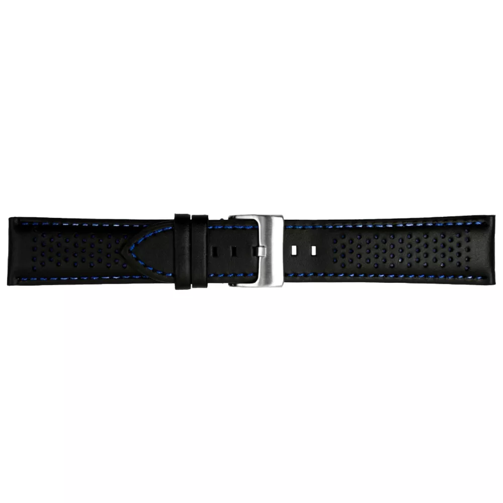Crni Poletto Cosmos leather and lorica waterproof kaiš za sat sa tamno plavim detaljima je elegantan i funkcionalan izbor za vaš sat. Kaiš je izrađen od visokokvalitetne kože, u crnoj boji, sa srebrnom kopčom sa iglicom. Sa širinom od 20 mm, savršen je za većinu modela satova. Posebno je pogodna opcija za one koji traže otpornost na vodu, jer je napravljen od materijala koji obezbeđuje vodootpornost, dok ravan ulaz omogućava jednostavno postavljanje.