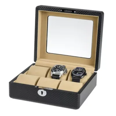 Kožna kolekcionarska kutija za šest ručnih satova sa ključem.