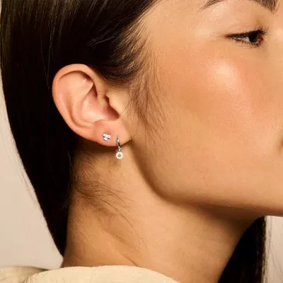 Tri brušena cirkona ovih minđuša zajedno čine savršeno jedinstvo. Postavka od belog zlata ovih minđuša pružaju prefinjenu eleganciju.