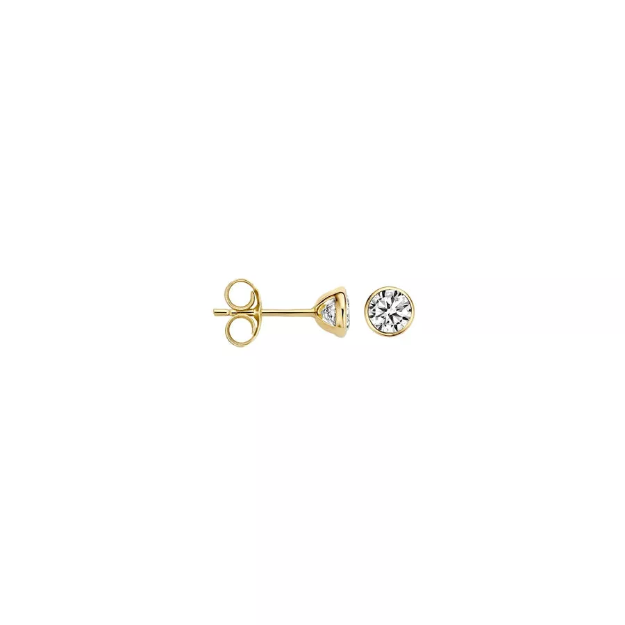 Beli cirkoni daju prelepu blistavost ovom klasičnom modelu mindjuša od 14k žutog zlata.