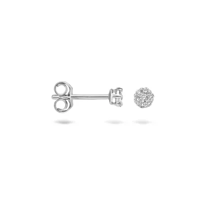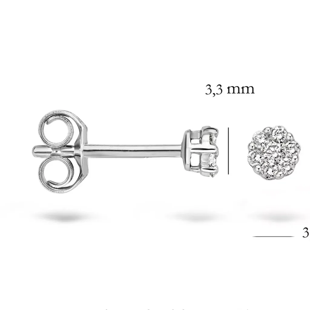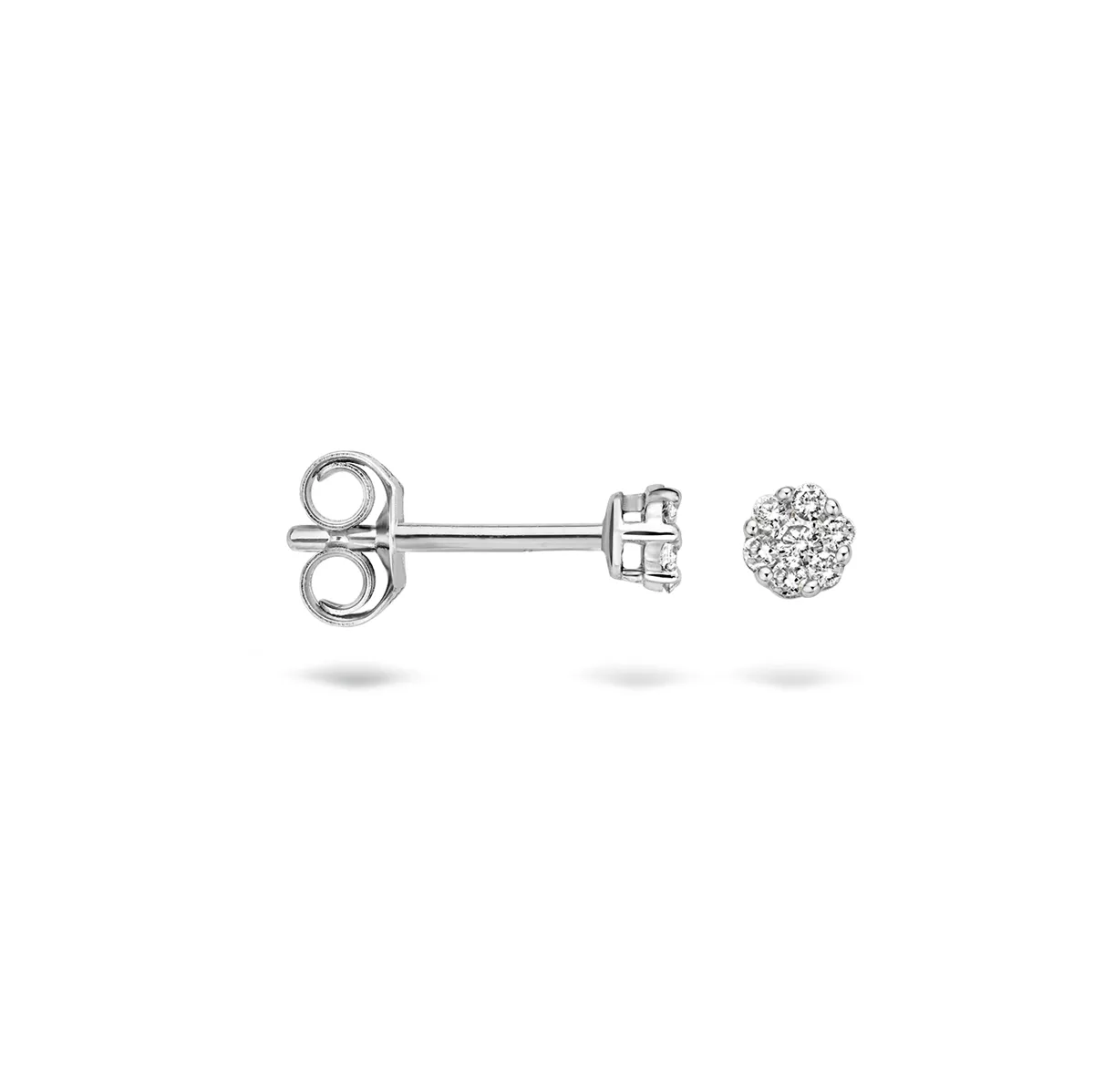 Blistavi dijamanti krase ove vanvremenske minđuše od 14ct belog zlata. Dijamanti imaju karatnu težinu od 0,05, a prečnik minđuša je 3,3 mm. Dizajn je prelep sam po sebi, ali je savršen u kombinaciji sa drugim minđušama Blush nakita.