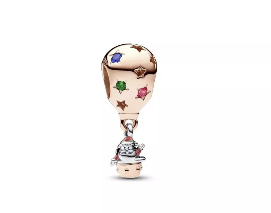 Ovo je sezona za dvobojni privezak u obliku Deda Mraza balona na vruc´i vazduh. Izrađen od čistog srebra i 14k roze pozlate, jedan od ovogodišnjih najrazigranijih prazničnih privezaka sadrži detalje od porcelana i kamenje svečanih boja u prazničnom ambijentu u obliku zvezde. Glavni lik Božic´a dobija zabavan novi način prevoza, vozec´i se dirižablom koji takođe sadrži poruku „Voli mir i radost“ – da te podseti o čemu se zaista radi u ovoj sezoni. Nosi ovaj veseli božic´ni privezak na sve svoje praznične zabave!