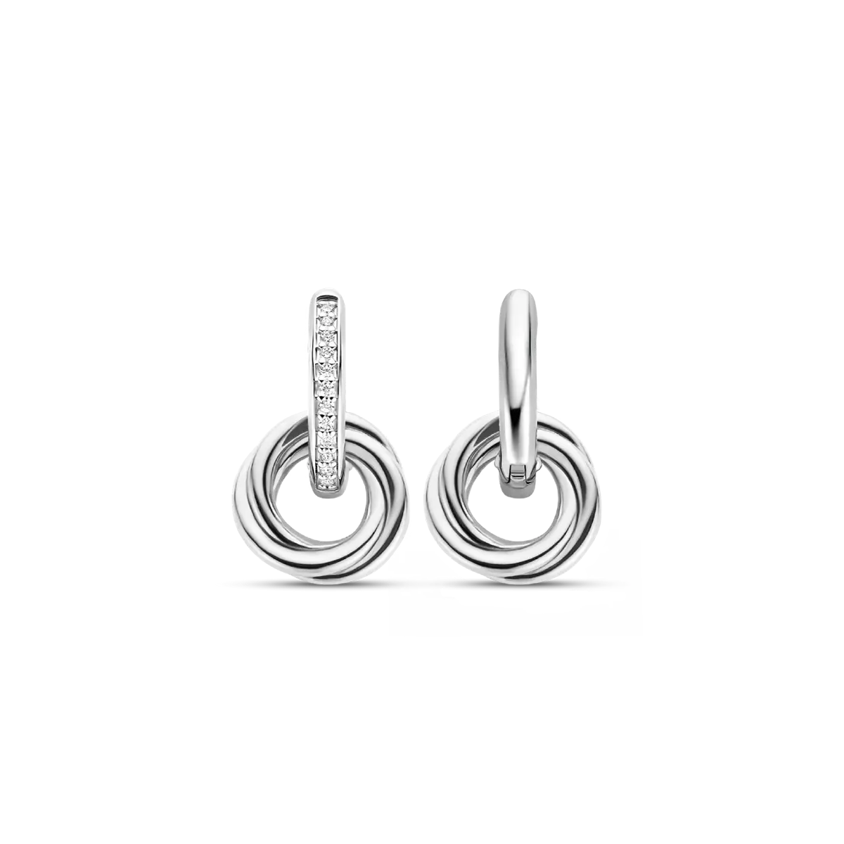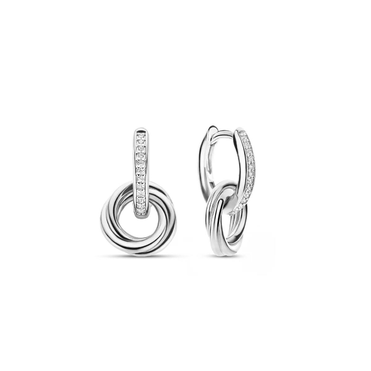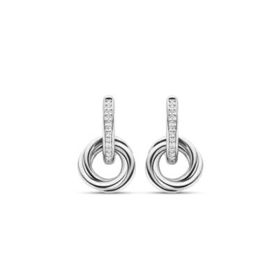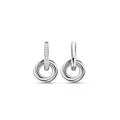 Ove TI SENTO – Milano srebrne minđuše 7857ZI sa dva elegantna kruga sa uvrnutim linijama koje vise sa malih obruča.. Ove minđuše su izrađene od 925 srebra i obložene slojem rodijuma kako bi ih zaštitile i zadržale sjaj. Ovi bezvremenski komadi c´e vašoj odec´i dati dašak prefinjenosti.