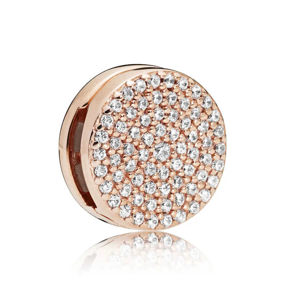 Dodajte svetlucavi ukras vašem izgledu ovim priveskom sa kopčom od 14k roze pozlate. Dizajniran za Pandora Reflexions narukvice, okrugli komad savršeno prijanja na vašu narukvicu i čvrsto stoji na mestu zahvaljujući skrivenom silikonskom jezgru.