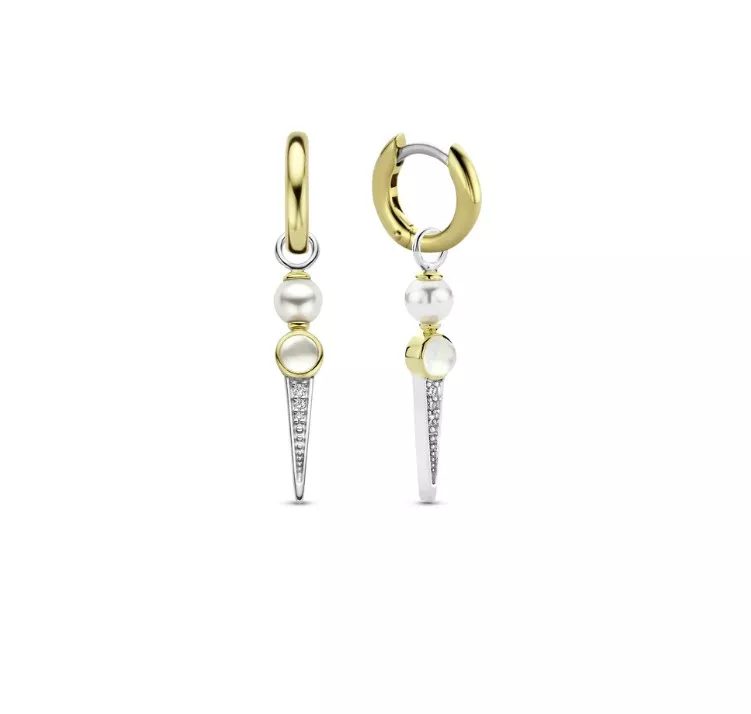 Ove TI SENTO pozlac´ene minđuše 7933IP imaju oštar oblik ukrašen sjajnim biserima, sanjivim sedefom, zaslepljujuc´im popločavanjem i blistavim žutim zlatom. Biseri su suprotstavljeni oštrim oblicima stvarajuc´i savršenu ravnotežu između svetlosti i tame. Minđuše su u potpunosti izrađene od vrhunskog srebra 925 i presvučene žutim zlatom za raskošan i topao dodir.