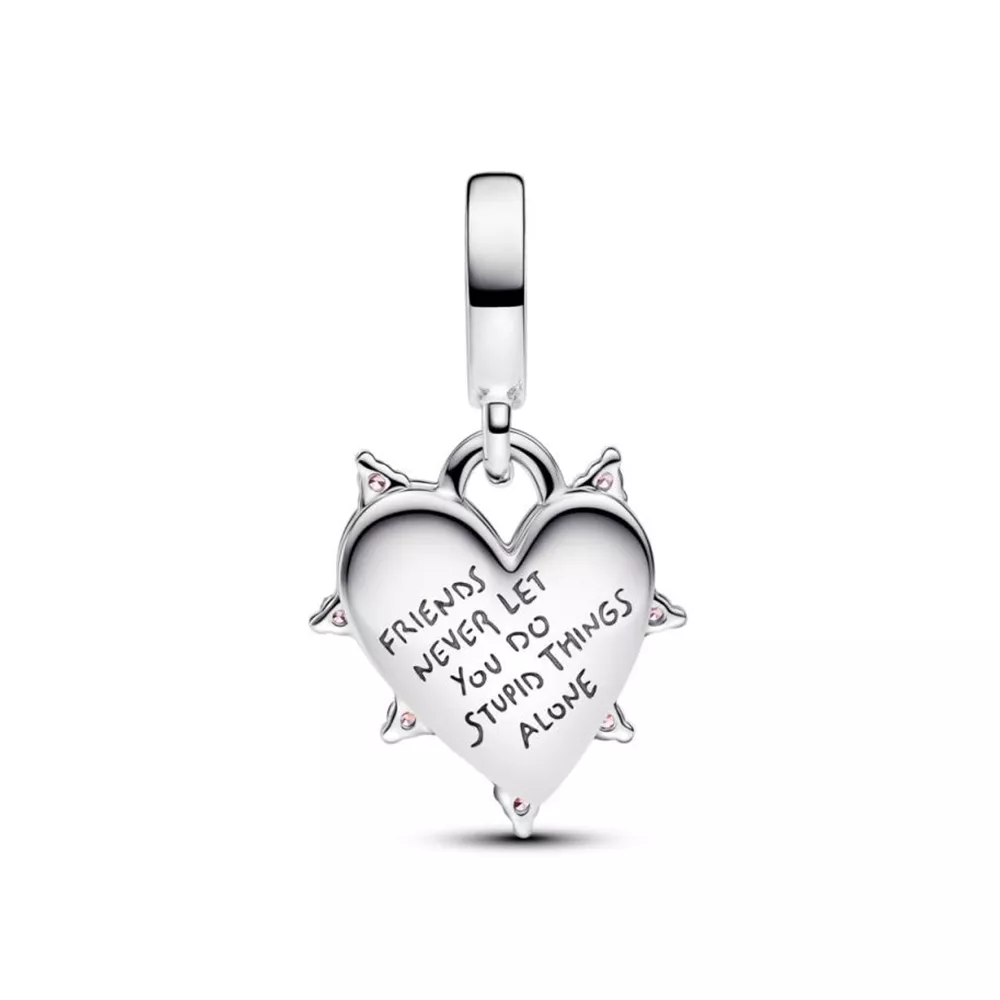 Proslavi večno prijateljstvo uz dvostruki privezak od čistog srebra, koji sadrži svetlucavo kamenje i ružičasti opal napravljene u laboratoriji. Poruka "Friends never let you do stupid things alone" („Prijatelji te nikad ne puštaju da radiš glupe stvari sam“) je ugravirana na poleđini čvrstog priveska, i savršena je da oda priznanje onima koji prolaze sa tobom kroz sve to.