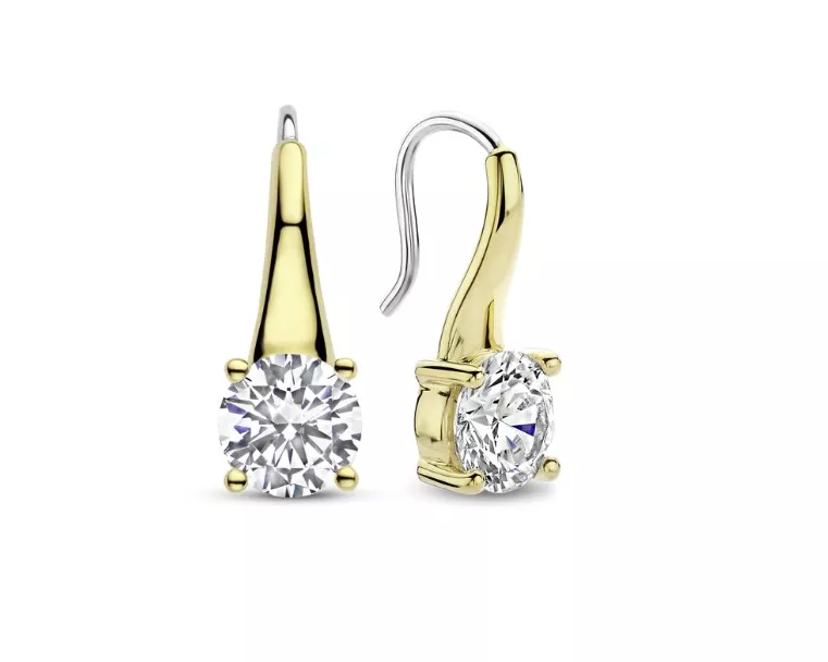 Ove TI SENTO pozlac´ene minđuše imaju blistavi veliki cirkon u beloj boji u ??blistavim pozlac´enim zupcima. Briljantno kamenje od cirkona je stručno sečeno da reflektuje svetlost iz svakog ugla. Postavke zubaca osiguravaju da kamenje ostane bezbedno na mestu dok omoguc´ava maksimalan prodor svetlosti i stvaranje očaravajuc´e iskre.