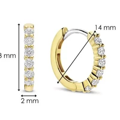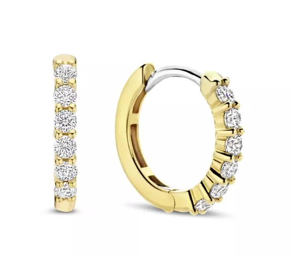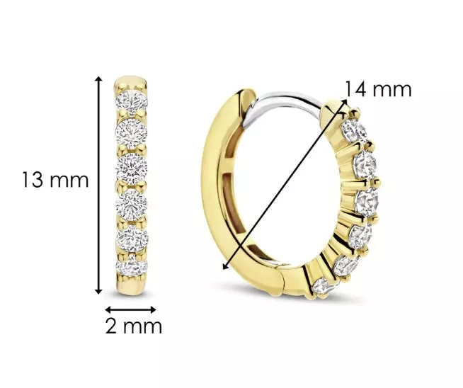 Ovi TI SENTO pozlac´eni mali obruč ukrašeni blistavim nizom od kubnih cirkona, svedočanstvo su vanvremenske elegancije i prefinjenog glamura. Izrađene sa preciznošc´u od vrhunskog srebra 925, zatim su prevučene žutim zlatom za dodir sjaja. Obruči se mogu pohvaliti delikatnim prečnikom od 14 mm koji nude suptilan, ali zadivljujuc´i dodatak vašoj kolekciji nakita. Ove luksuzne osnove c´e dati izjavu za svaku priliku, bilo da se radi o neobaveznom ili formalnom izlasku.