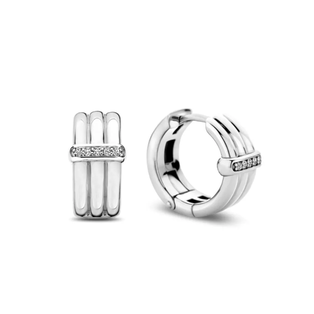Dodir Art Deco elegancije susreće modernu svestranost u ovim očaravajućim TI SENTO srebrnim alka minđušama. Izrađene od blistavog srebra i presvučene platinom, ove minđuše krasi trio delikatnih prstenova povezanih redom blistavog pavéa od kubnih cirkona. Ovaj umetnički dizajn spaja modu i umetnost, postižući savršenu ravnotežu koja upotpunjuje svaki stajling. Broj tri, simbol harmonije i potpunosti, unosi dodatno značenje u ove minđuše. Nosite ih samostalno za bezvremensku sofisticiranost ili ih kombinujte s drugim TI SENTO komadima za personalizovanu "Ear party" koja odražava vaš jedinstveni stil. Izrađene s posebnom pažnjom prema osetljivoj koži, ove minđuše su bez nikla i hipoalergene, pružajući dugotrajnu udobnost i vrhunski kvalitet.