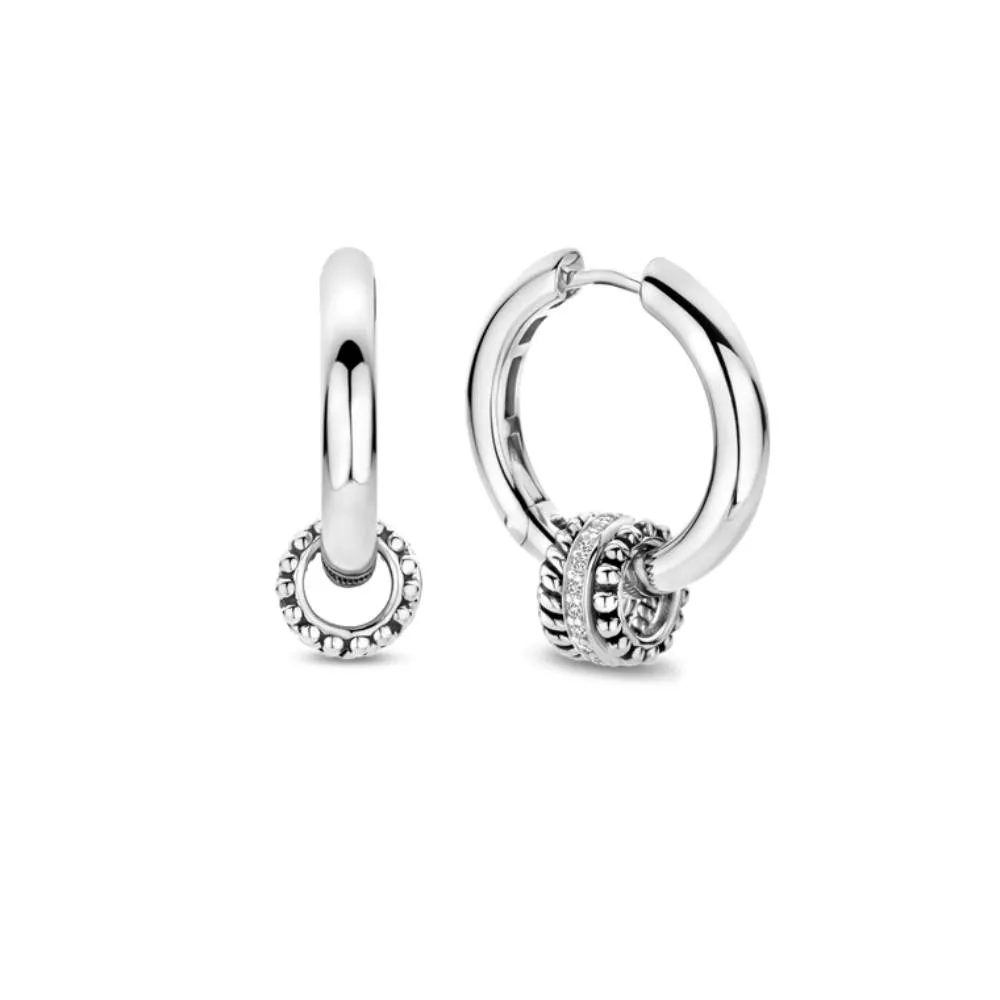Bezvremenska elegancija susreće modernu razigranost u ovim šarmantnim TI SENTO srebrnim alka minđušama. Izrađene od srebra i presvučene dragocenim slojem platine, ove klasične alke ostaju blistave i zaštićene od ogrebotina. Svaka alka krasi šarmantan privezak – trio isprepletenih alkica. Jedna alka sija u hladnom srebrnom sjaju, dok centralna alka blista pavéom kubnih cirkona, stvarajući očaravajući efekat. Ove svestrane minđuše donose dozu razigrane sofisticiranosti, savršene za podizanje svakog stajlinga. Spoj klasičnih alki i modernog dizajna privezaka čini ih idealnim izborom kako za svakodnevne prilike, tako i za posebne događaje. Nosite ove alka minđuše samostalno za suptilnu eleganciju ili ih kombinujte s drugim TI SENTO komadima za personalizovan izgled koji odražava vaš jedinstveni stil. Izrađene s posebnom pažnjom prema osetljivoj koži, ove minđuše su bez nikla i hipoalergene, pružajući dugotrajnu udobnost i vrhunski kvalitet.