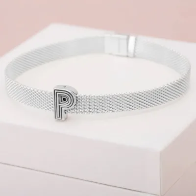 Savršeno oblikovano slovo P izrađeno je od srebra. Dekorativne linije sa jedne strane i savršena ispoliranost druge strane jesu njegove glavne karakteristike. Dizajniran je za Reflexions narukvicu.