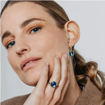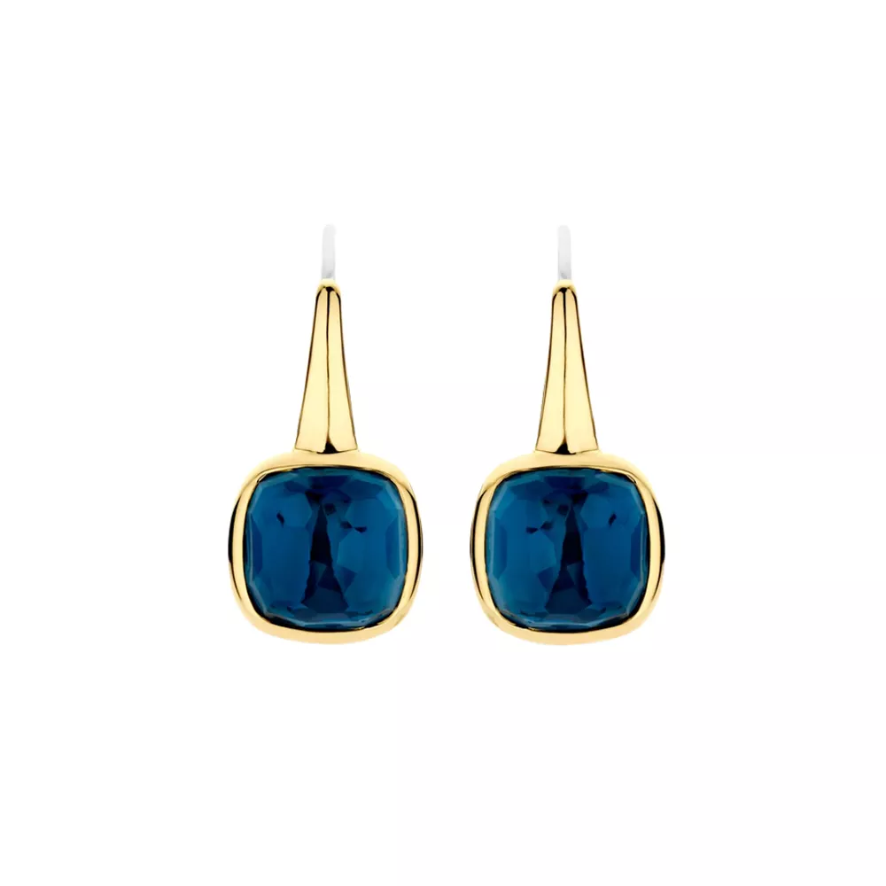 Ti Sento minđuše predstavljaju spoj sofisticiranosti i moderne elegancije. Izrađene od visokokvalitetnog srebra, krasi ih fasetirani tamnoplavi kamen koji očarava svojom dubokom, okeanskom nijansom. Kamen je smešten u sjajni žuto pozlaćeni okvir, koji dodatno naglašava njegovu bogatu boju. Minđuše su okačene na elegantne pozlaćene kukice koje omogućavaju sigurno i udobno nošenje, dok njihovo graciozno njihanje u pokretu hvata svetlost i ističe vaš stil.