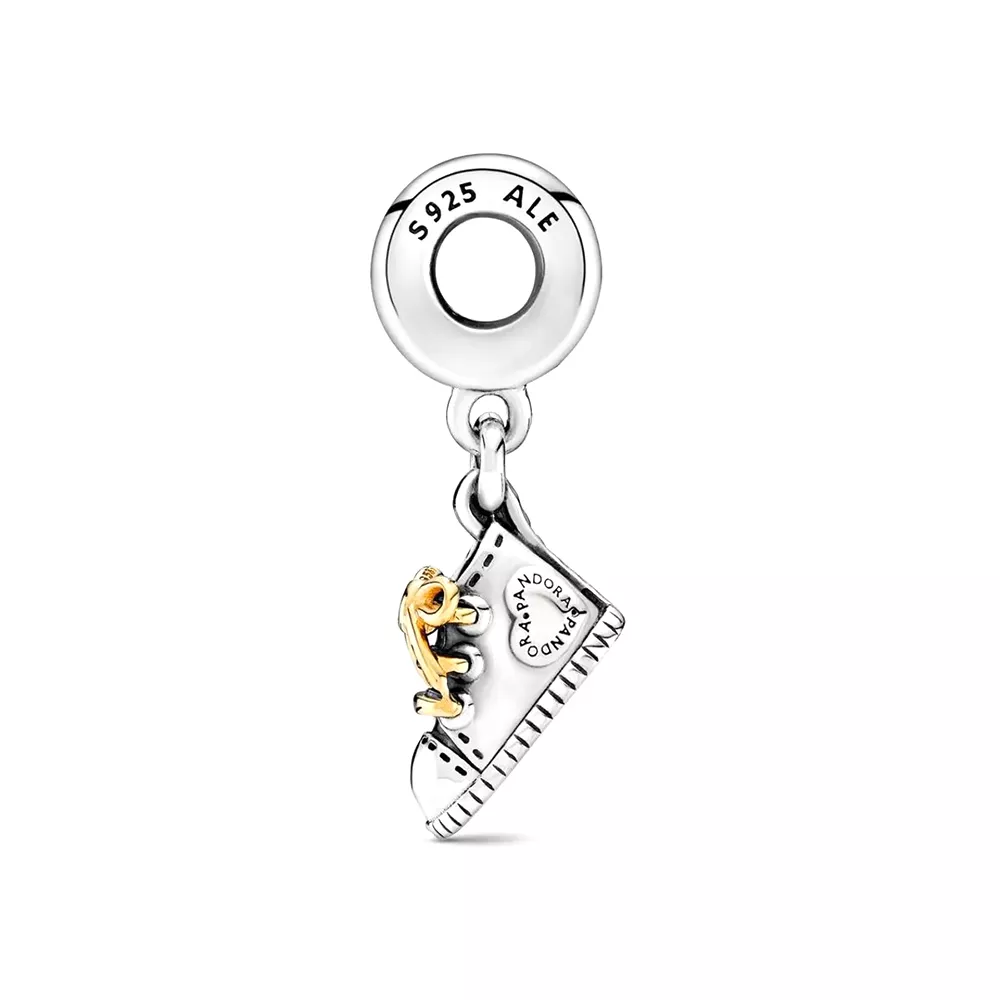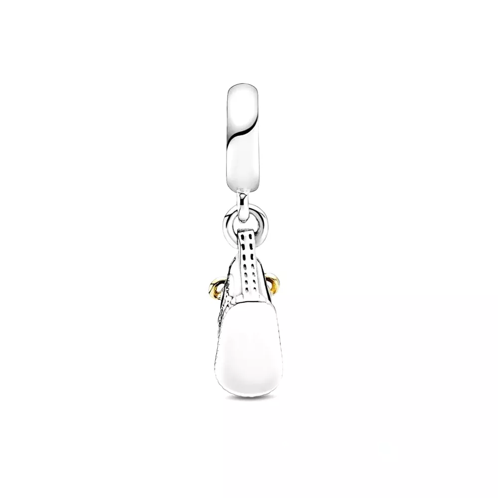 Poželite mališanu dobrodošlicu na svet visećim priveskom Bebina cipelica. Ovaj dvobojan privezak u obliku cipelice je ručno završen od srebra i ima pertlice od 14k zlata. šupalj iznutra, ovaj bebi privezak dodatno je ukrašen šavovima. Reljefno srce sa Pandora logom sa strane visećem privesku daje legendarnu prepoznatljivost. širite radost ovim Pandora Moments srebrnim priveskom.