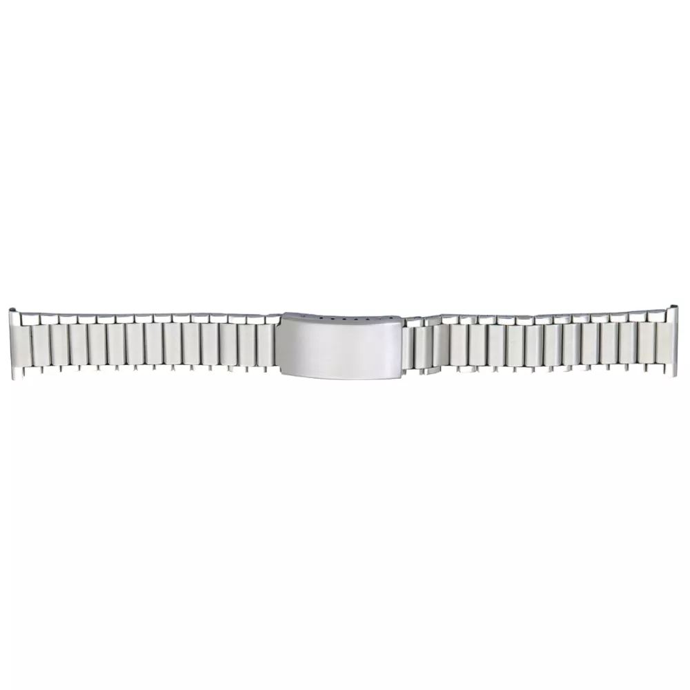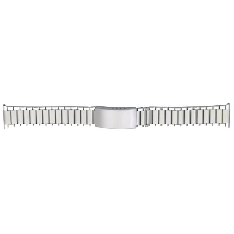 Narukvica za sat od nerđajućeg čelika u srebrnoj boji sa potpuno obloženom konstrukcijom, koja obezbeđuje gladak i sofisticiran izgled, uz otpornost i dugotrajnost, širine 20mm. Narukvica je izrađena od čelika u dve različite završne obrade: brušenog i poliranog.