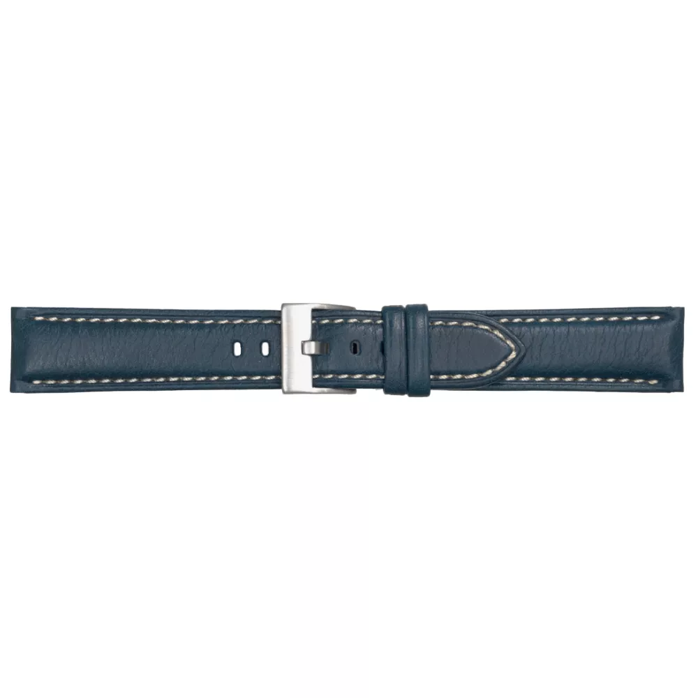 Tamno plavi kaiš za sat Odessa Extra-Long, izrađen od teleće kože u italijanskog porekla širine 18mm. Opremljen je kopčom od nerđajućeg čelika i postavom od prirodne kože. Ima polustrukturisanu završnicu, dodatno punjenje za veću udobnost i dekorativne šavove, što mu daje sofisticiran i izdržljiv izgled.