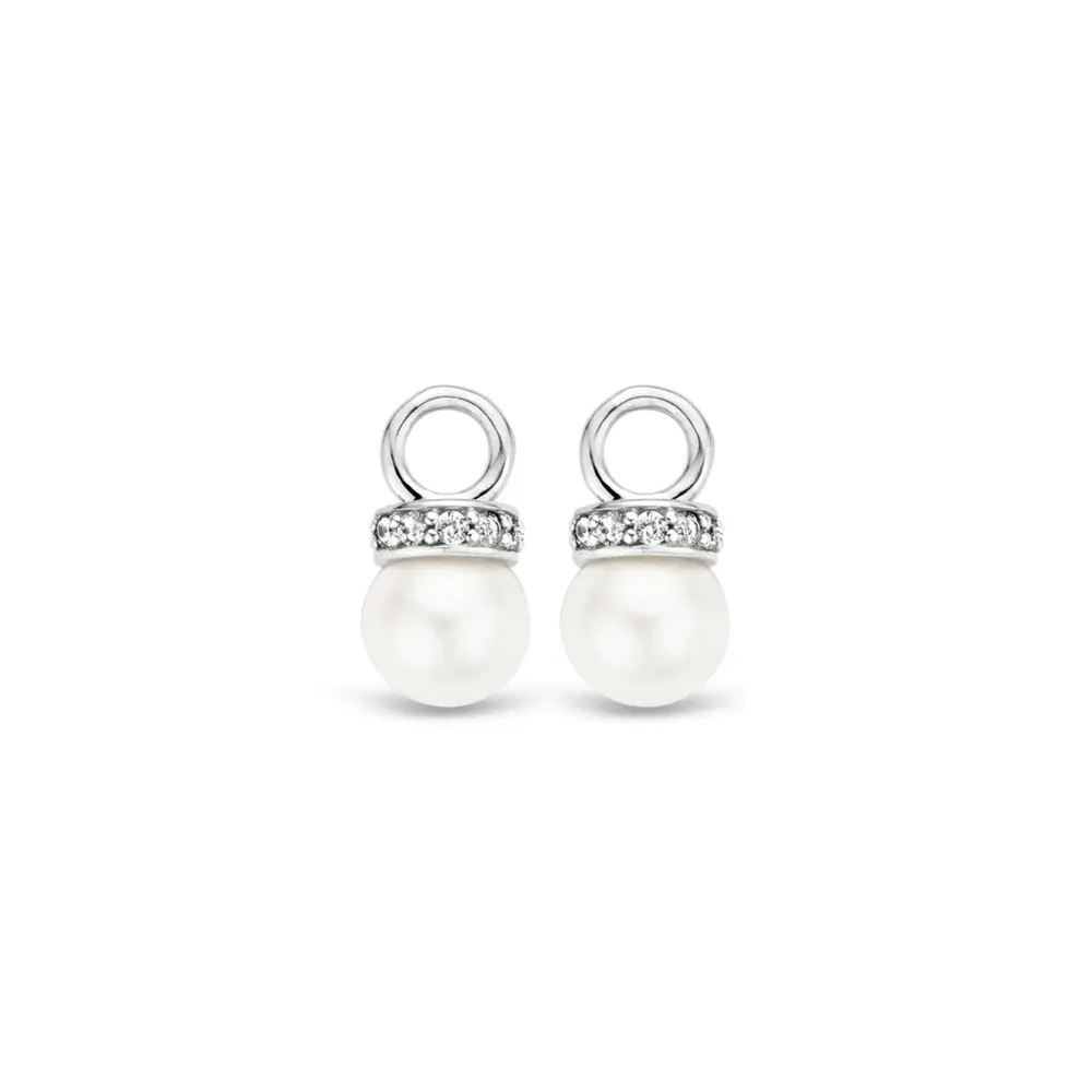 Privezak za minđuše sa prelepim, belim biserom i diskretnim cirkonima koji su smešteni u srebrnu osnovu. Priveske možete staviti zasebno na svaku minđušu ili na samo jednu, a možete i kombinovati različite priveske i kreirati sopstveni stil. Uživajte u ovim prelepim privescima i čaroliji koju Vam donosi Ti Sento nakit.