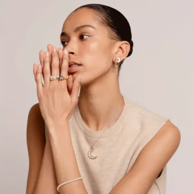 Ti Sento privesci za minđuše kombinuju sanjivi sedef sa blistavim žutim zlatom. Ženstvena i magična energija meseca je primarna inspiracija za ova mala blaga. Okačite ih na svoje omiljene alke i pustite ih da naprave magiju.