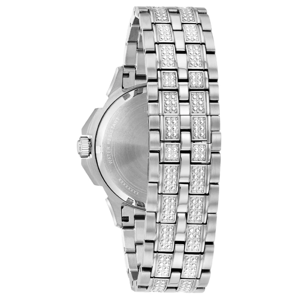 Iz Crystal kolekcije. Muški višefunkcionalni sat Octava odiše luksuzom, ukrašen sa 300 kristala na kućištu i narukvici od nerđajućeg čelika, kao i na srebrno-belom ciferblatu sa šest kazaljki. Ovaj elegantan i smeli model dodatno poseduje ravno mineralno staklo, preklopnu kopču, kvarcni mehanizam i otpornost na vodu do 30 metara.