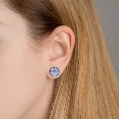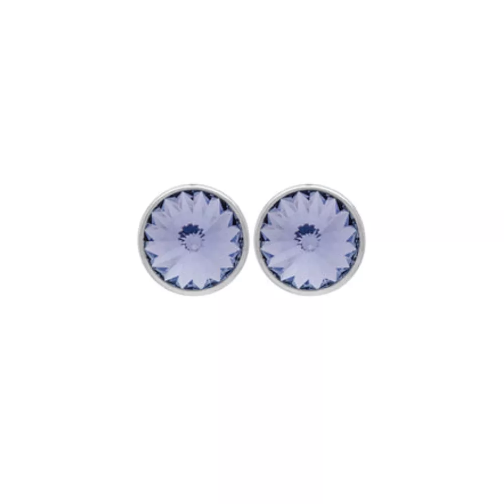 Rodijumom presvučene srebrne minđuše iz kolekcije Basic, ukrašene kristalima prečnika 11,5 mm u obliku kruga svetlo plave boje. Klasičan i elegantan dizajn savršen za svaku priliku.