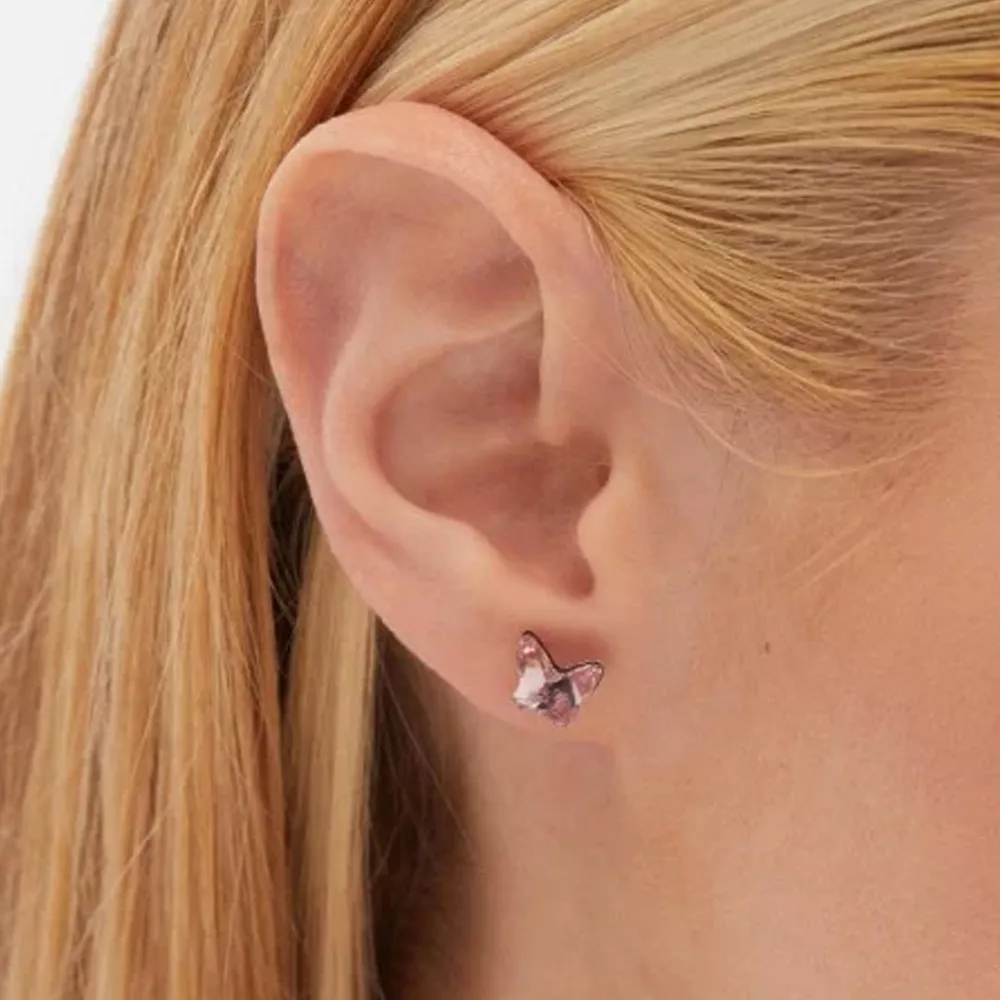 Victoria Cruz minđuše donose savršen balans između ženstvenosti i sofisticiranog sjaja. Upečatljivi rozi Swarovski kristali u obliku leptira pažljivo su postavljeni da uhvate svetlost iz svakog ugla, stvarajući prefinjeni sjaj koji ističe vašu prirodnu lepotu.