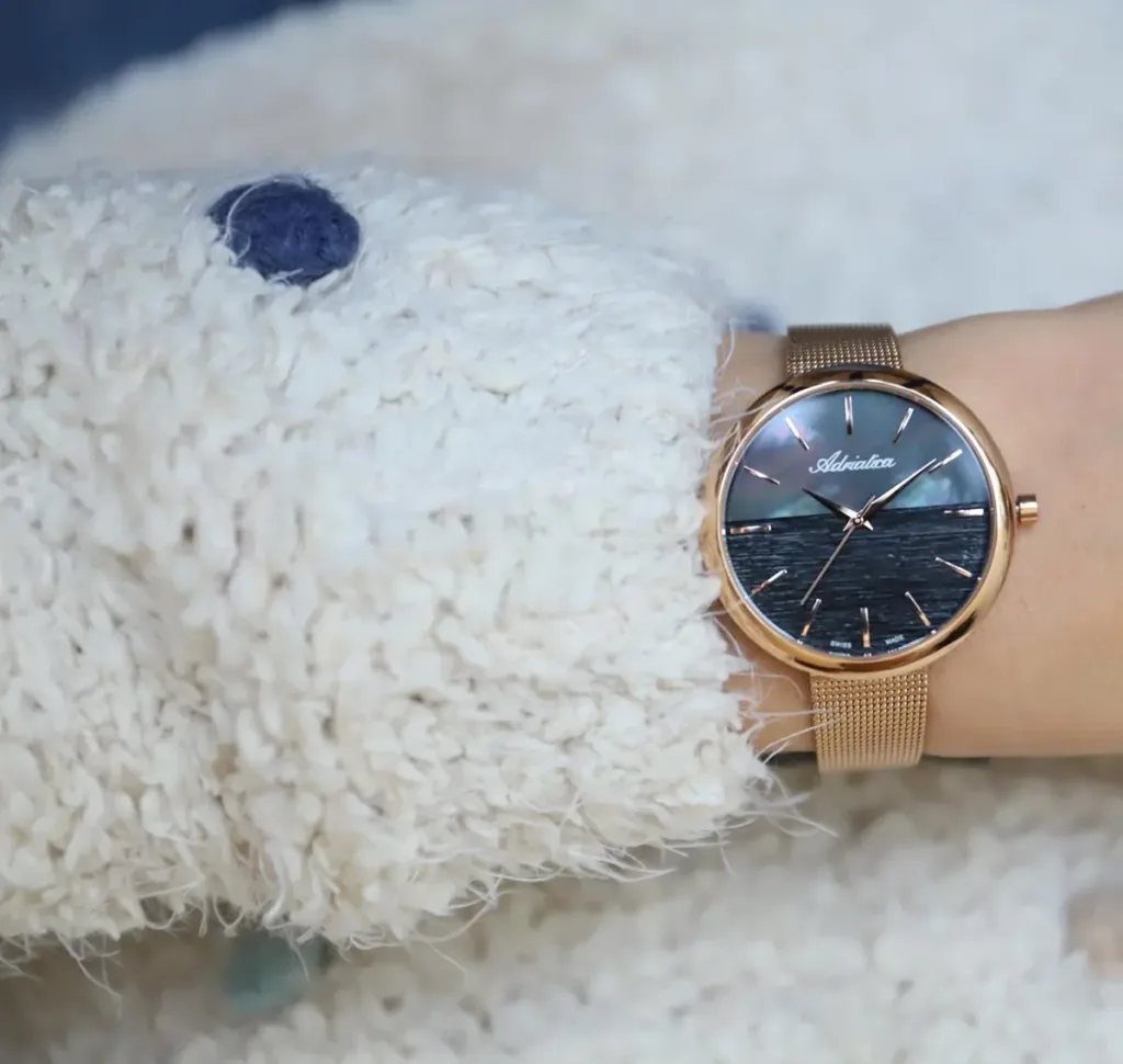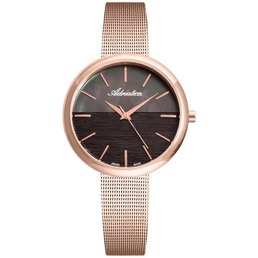 Ženski ručni sat brenda Adriatica sa zanimljivim dizajnom brojčanika kao i elegantnom pancirnom narukvicom.