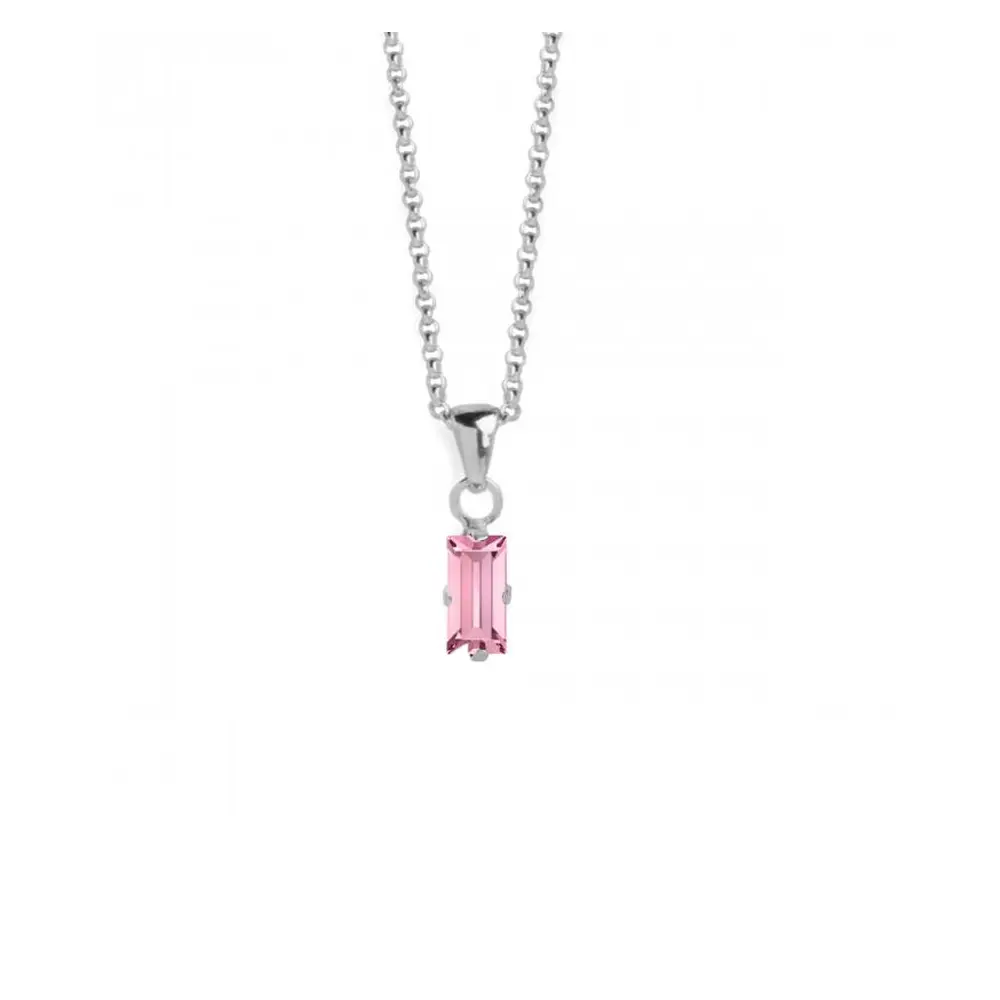 Ogrlica španskog brenda Victoria Cruz iz kolekcije "Macedonia", sa priveskom koji sadrži Swarovski kristal roze boje pravouganog oblika.
