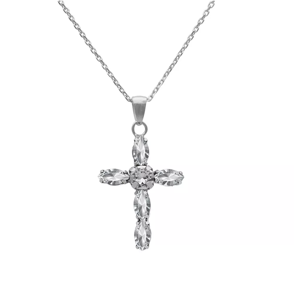 Victoria Cruz ženska ogrlica od srebra u boji srebra sa priveskom od Swarovski kristala transparentne boje u obliku krsta.
