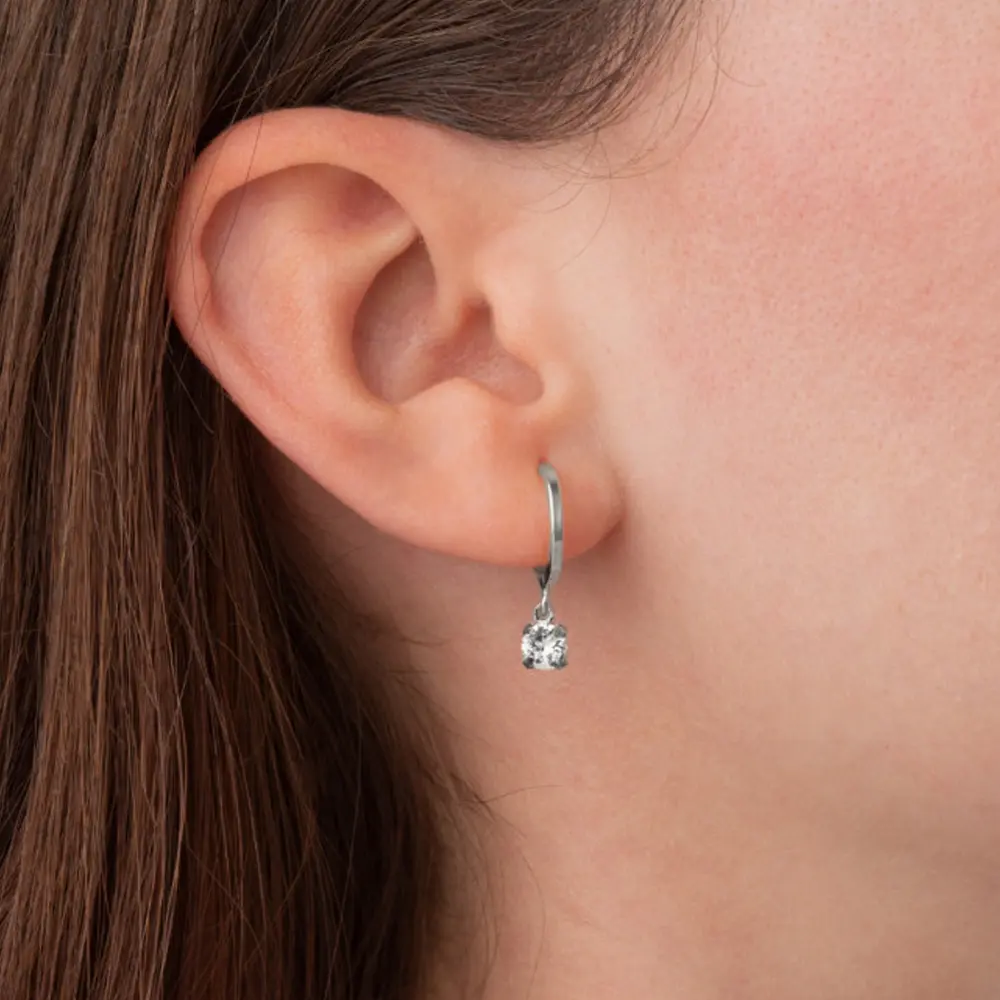 Elegantne minđuše španskog brenda Victoria Cruz, izrađene od srebra 925 i sa svarovskim kristalom bele boje.