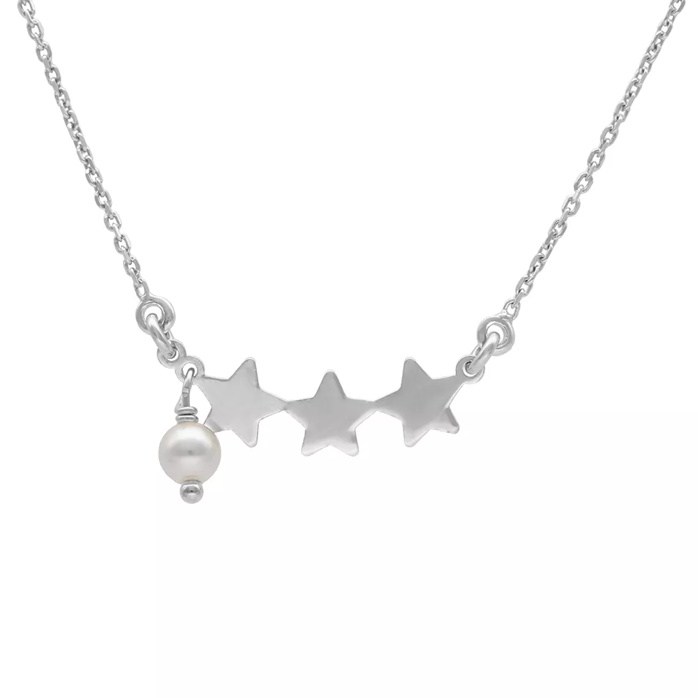 Victoria Cruz ženska srebrna ogrlica sa tri zvezde i Swarovski biserom.