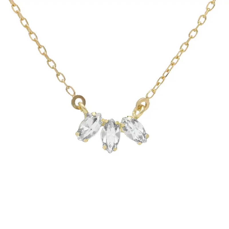 Kratka pozlaćena srebrna ogrlica sa trostrukim kristalima u beloj boji iz kolekcije Las Estaciones.