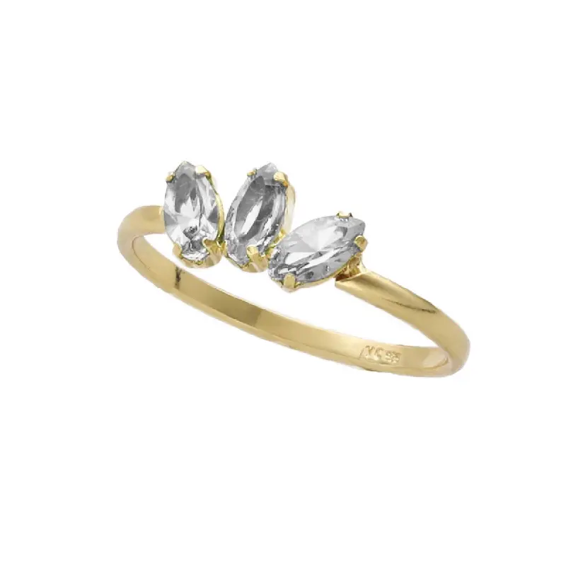 Srebrni prsten sa trostrukim kristalima bele boje iz kolekcije Las Estaciones u pozlaćenju.