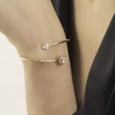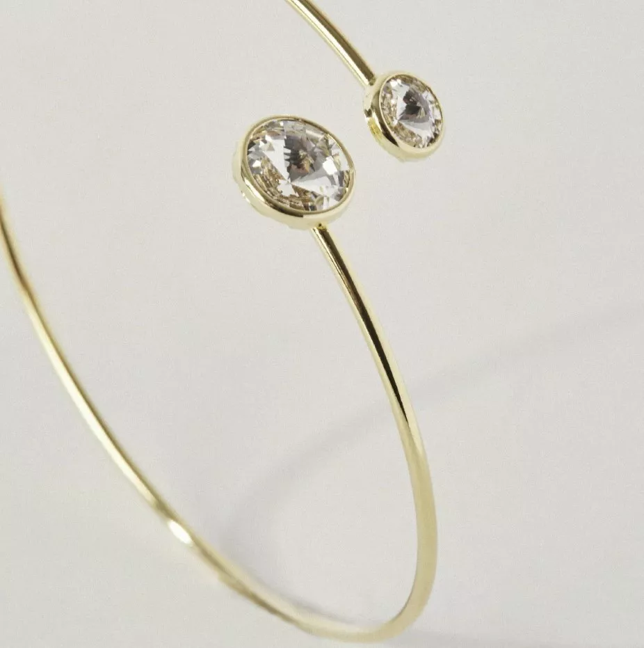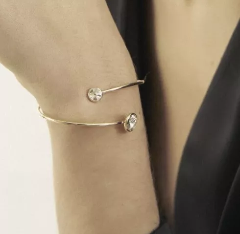 Srebrna narukvica sa 18K pozlatom i dva bela cirkona. Veoma elegantna, minimalističkog dizajna
