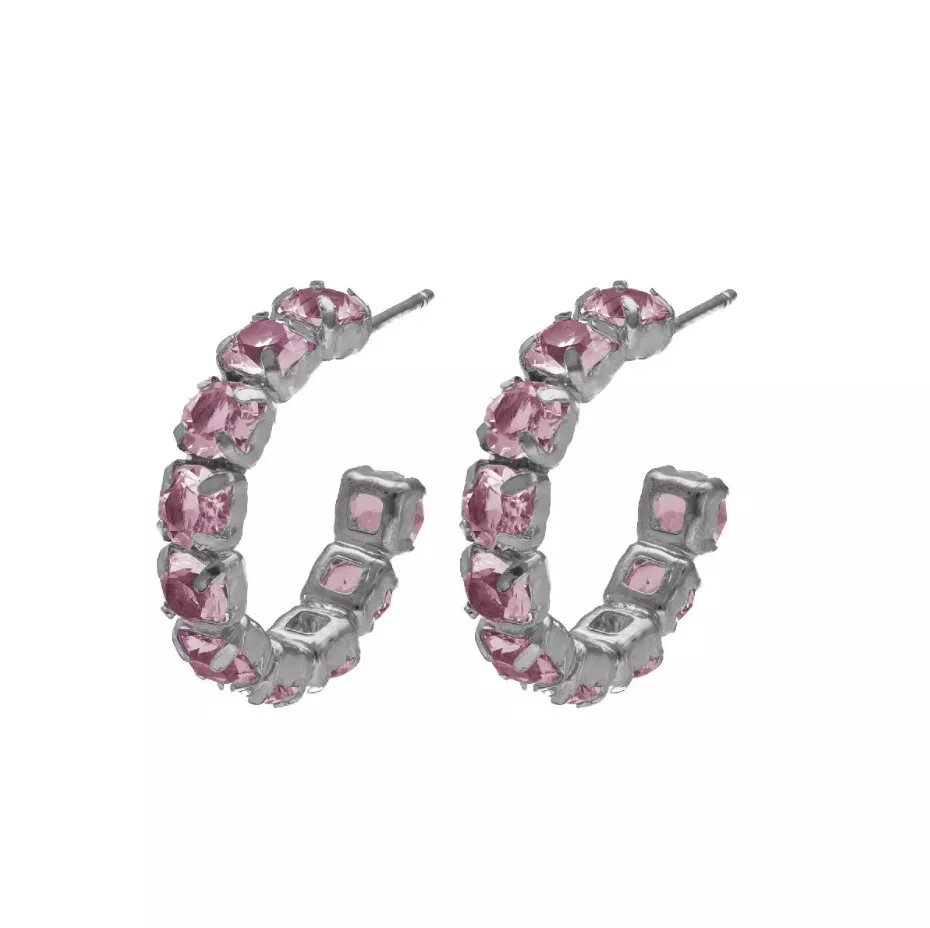 Polukružne minđuše brenda Victoria Cruz izrađene od srebra i ukrašene roze cirkonima.