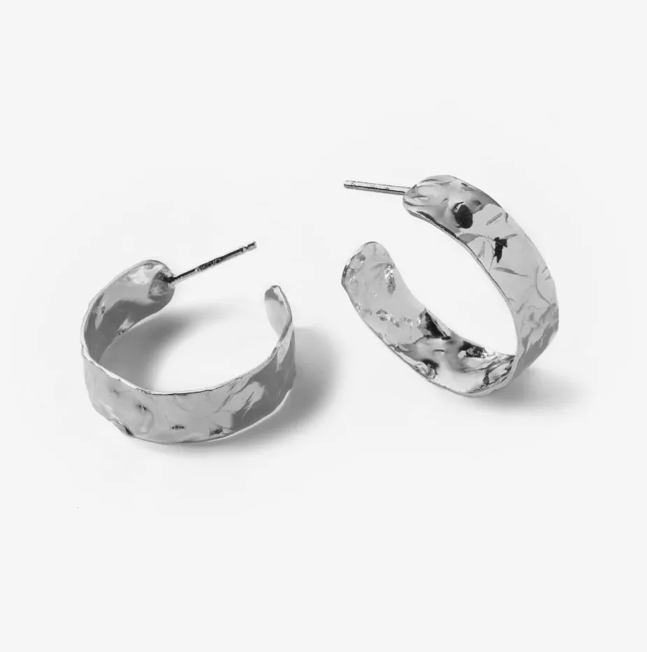 Ženske minđuše brenda V. Cruz, od srebra, polukružnog oblika i reljefaste strukture.